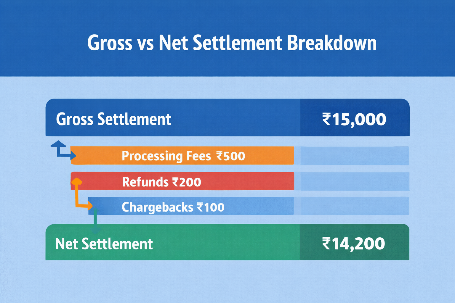 In addition, most processors follow a net settlement model, meaning they deduct fees before transferring funds.